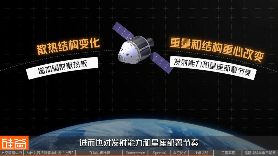 随之而来的,是散热结构的变化。通信载荷产生的热量有限,但算力载荷会持续发热,这意味着卫星外部, 必须增加专门的辐射散热板,把热量稳定地送向深空。