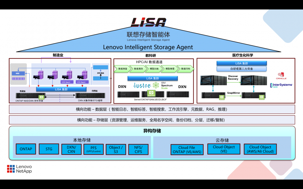 联想凌拓构建了以联想存储智能体(Lenovo Intelligent Storage Agent,简称“LiSA”)为核心的智能数据基础设施解决方案,致力于在通用HPC/AI、工业质检、智慧医疗等多个领域实现规模化落地。LiSA正逐步成为联想凌拓赋能千行百业的智能数据引擎,推动企业从传统存储的数据管理迈向AI就绪的数据业务智能化的新阶段。