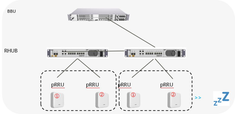大连民族大学校园室内站点存在明显的话务潮汐特征,不同区域在教学、休息、节假日等时段的通信需求差异显著,传统小区粒度的关断方案难以适配精细化的场景需求。针对这一痛点,大连联通精准响应校园核心诉求,聚焦两大核心方向攻坚突破:一是让小站支持pRRU级极致休眠,深度适配不同区域话务场景;二是推动DIS以pRRU粒度关断,替代传统小区粒度关断模式,在节能的同时保留必要网络覆盖,实现更科学的资源调配。