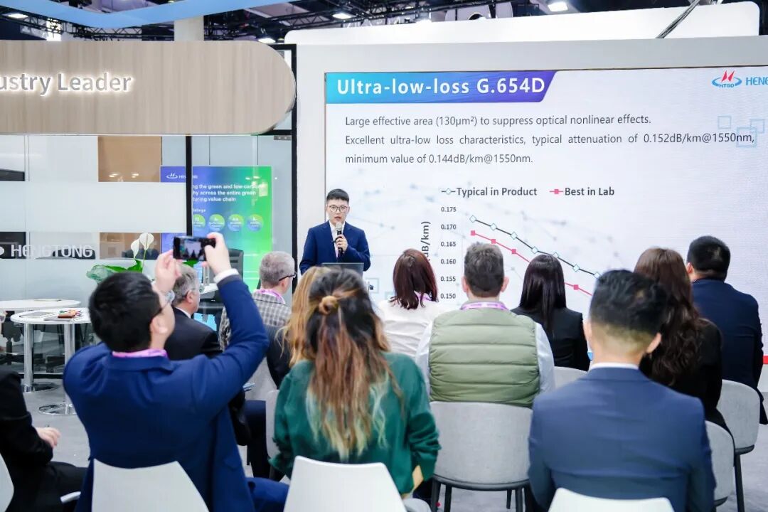 在这个群星璀璨的舞台上,亨通光电凭借一项关键底层技术的突破,展示了中国企业在新一代光网络领域的“硬核”实力:其G.654.D光纤衰减系数成功降至0.144dB/km,创造了中国同类产品性能的新纪录,达到国际领先水平。这一指标的实现,标志着亨通在光纤基础理论研究和高端棒纤制造工艺上取得了系统性、跨越式的进步。