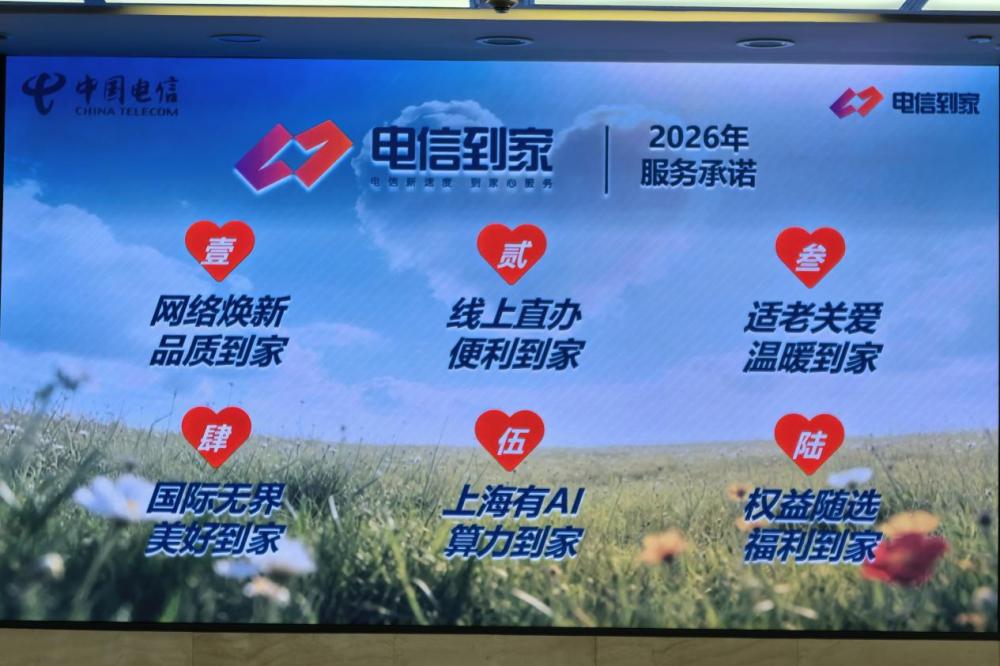 上海电信最新作出的六项服务承诺脉络清晰:“网络焕新,品质到家”解决的是家庭网络的体验问题;“线上直办,便利到家”优化的是服务交付的效率问题;“适老关爱,温暖到家”回应的是数字包容的人文问题;“国际无界,美好到家”对接的是城市开放的格局问题;“上海有AI,算力到家”布局的是产业转型的动能问题;“权益随选,福利到家”构建的是用户运营的价值问题。