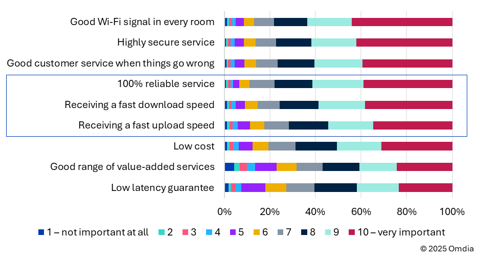 图1:您的宽带套餐中以下特性的重要性如何?来源:Omdia。