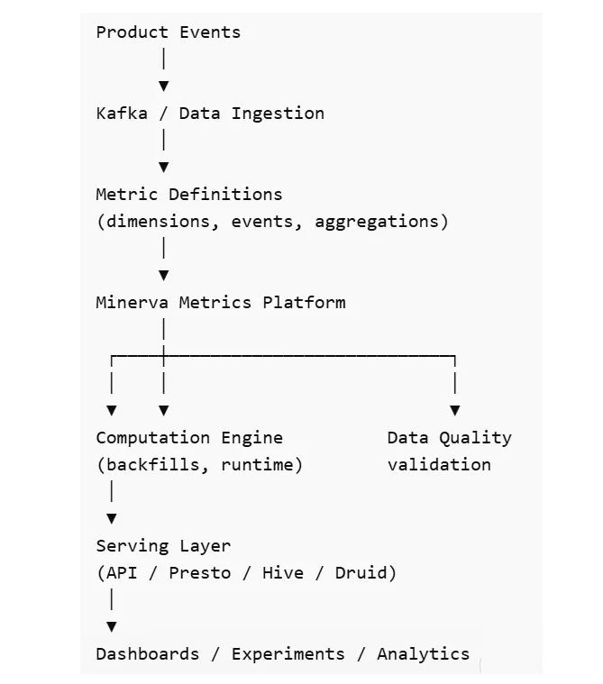 [数据仓库] → [语义层(Minerva)] → [指标计算] → [指标 API] → [分析工具]