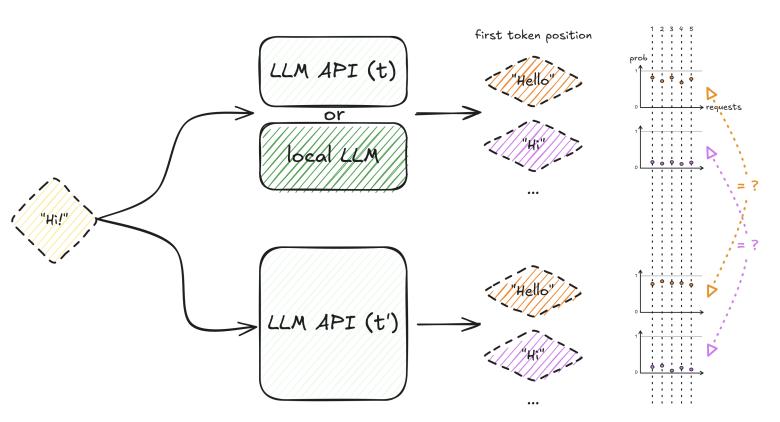 为了克服这种随机噪声,该技术通过向API发送简短提示词并获取单Token输出,重复采样N次以建立统计基准。