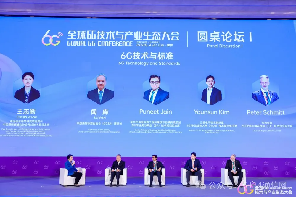 在本周于南京举办的2026年全球6G技术与产业生态大会“6G技术与标准”圆桌论坛上,来自中国信息通信研究院、中国通信标准化组织的专家代表与来自国际权威标准组织3GPP的多位主席共聚一堂,并针对全球6G技术路径与标准体系的协同演进展开了一场深入对话。