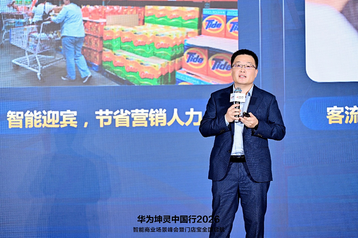 华为光产品线总裁陈帮华在致辞中表示,在广大客户和伙伴的支持下,2025年华为政企光业务实现快速增长,分销金牌、精英和工程商数量也实现了翻番。华为坤灵去年面向中小企业发布4+10+N战略,聚焦智能办公、智能商业、智能教育和智能医疗4大场景,提供10个一站式场景化解决方案和N款系列化明星产品,帮助中小企业打通智能世界的“最后一公里”。2026年,智能商业面向门店、商超、酒店三大核心场景,推出了系列创新解决方案和产品。其中,明星产品门店宝首创网关与NVR一体化融合架构,大幅降低门店ICT投入、缩短施工周期、简化部署与运维流程。同时,基于领先的鸿蒙编码技术,可节省75%硬盘空间,并搭载客流统计、无感考勤等智能化应用,全面提升门店运营管理效能。华为希望与各界伙伴同心同行,全力支撑中小企业智能化升级。