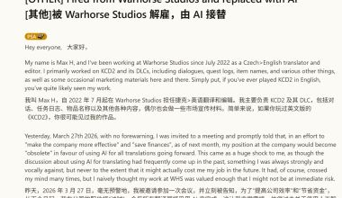 曝《天国:拯救 2》工作室 Warhorse Studios 解雇翻译人员,用 AI 取代