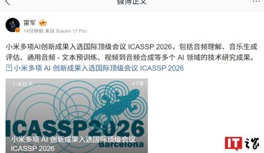雷军官宣小米多项 AI 创新成果入选国际顶级会议 ICASSP 2026,包括音频理解、音乐生成评估等