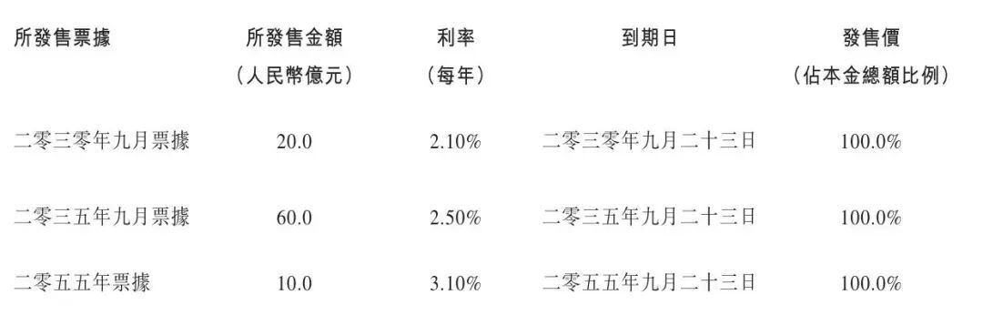 其中,腾讯发行规模20亿的2030年9月23日到期的2030年9月票据,年利率为2.1%;发行2035年9月票据60亿元,年利率为2.5%;发行2055年票据,年利率为3.1%。于扣除包销费用、折扣及佣金后,估计发行票据的所得款项净额将约为89.7亿元。票据预期于2025年9月23日发行。
