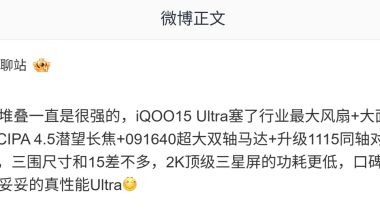 消息称 iQOO 15 Ultra 手机塞下行业最大风扇 + 大面积独立风道,搭载 7400mAh 电池