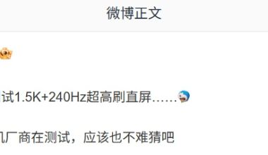 消息称天马和京东方测试 1.5K+240Hz 超高刷直屏
