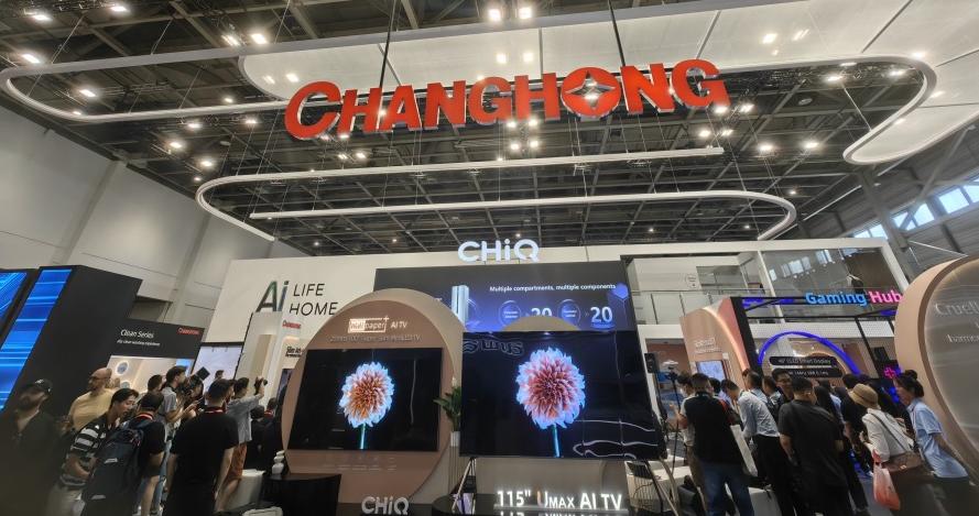 穿越TCL展馆进入22号馆,首先进入视野的是长虹电器。今年,长虹携全屋AI家电参展,同时发布了沧海智能体AI TV和长虹美菱智汇家AI大模型。据悉,沧海智能体AI TV能交流、能思考、会成长,长虹美菱智汇家AI大模型则拥有80亿级参数规模,可将大模型嵌入到冰箱、洗衣机、烘护机和空调等家电中。