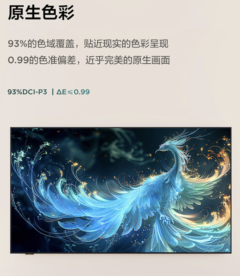 该电视配备 3840x2160 分辨率 144Hz VA 面板,支持 240Hz 动态加速,覆盖 93% DCI-P3 色域。