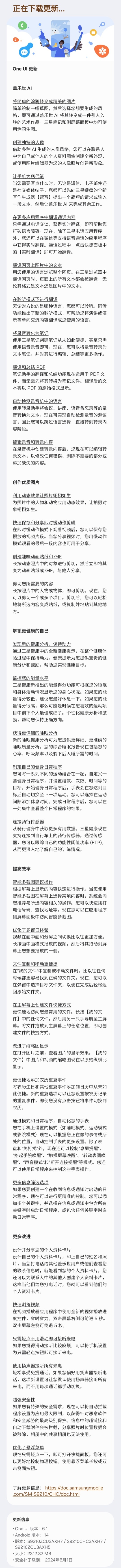 IT之家 9 月 9 日消息,三星 Galaxy S24 系列国行版手机现已推送 OneUI 6.1.1 版本更新,带来多项 AI 功能。