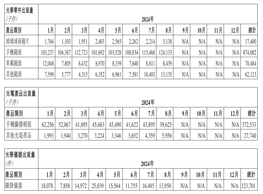 IT之家 9 月 9 日消息,舜宇光学科技今天在港交所公告,8 月手机镜头出货量 1.24 亿件,同比增长 14.6%;8 月手机摄像模组出货量 3963 万件,同比减少 25.2%。
