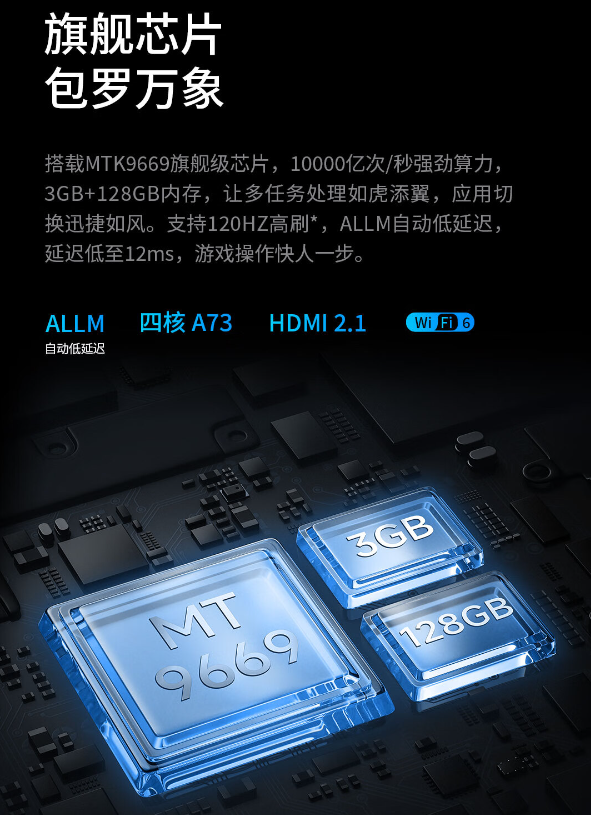 据介绍,峰米三色激光电视 T2 搭载 MTK9669 芯片,拥有 3GB+128GB 内存组合;该电视采用 ALPD RGB + 全色激光显示技术,辅以杜比视界高动态范围技术,兼容 HDR 10 和 HDR 10+ 标准。