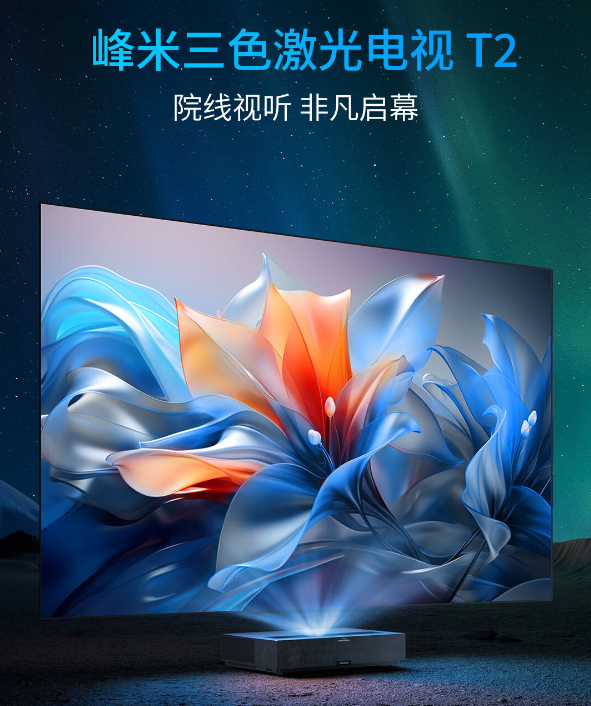 IT之家 9 月 9 日消息,峰米三色激光电视 T2 今日正式发布,现已上架京东平台开启预售,支持 0.21:1 投射比,拥有 480nit 亮度,定价 18999 元,首发 15999 元。