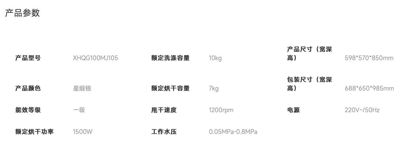 IT之家附洗衣机参数信息如下: