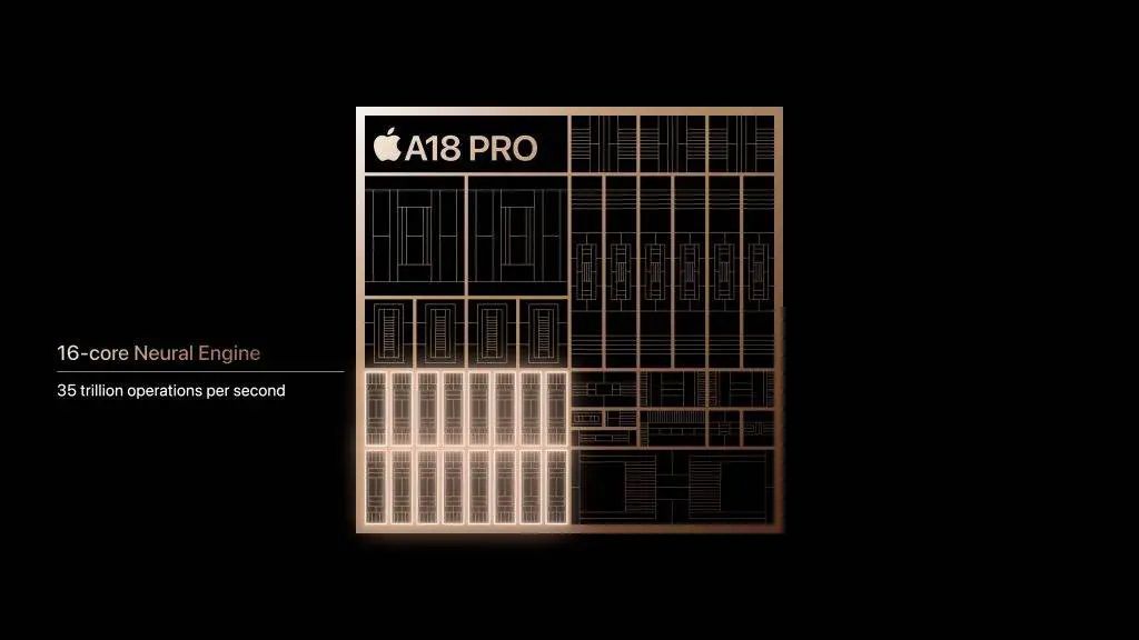 为 AI 而生的 A18 Pro,还搭载了 16 核神经网络引擎,运行 Apple 智能的能力比上一代提升了 15%。