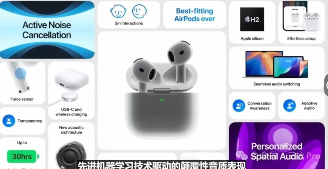 其中,Airpods 4搭载H2芯片,支持空间音频,与Siri对话时还能通过点头或者摇头表达是、否;具备智能降噪功能。