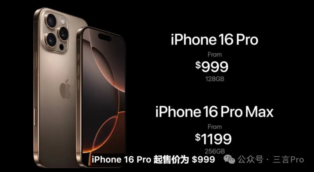 售价方面,iPhone 16 Pro版999美元起,Pro Max版1199美元起。