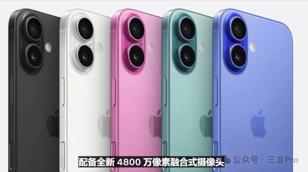iPhone 16 和iPhone 16 Plus新增青色、粉色和绿色三款新颜色,加上黑色、白色一共五种颜色。