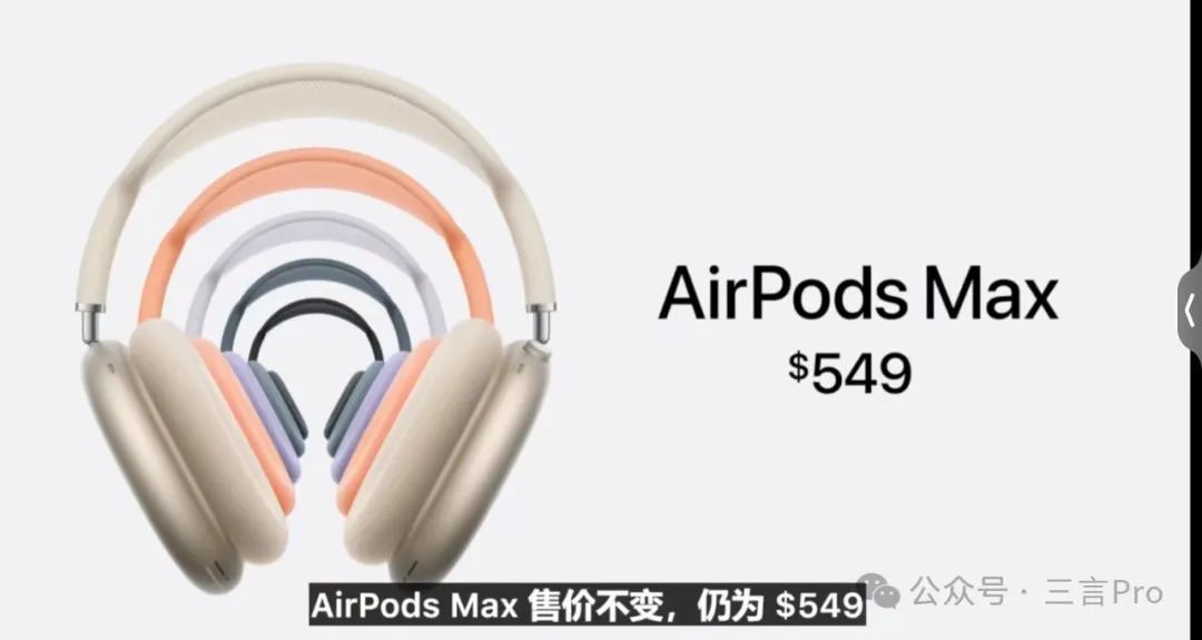 AirPods Max包耳式耳机也支持USB-C接口,共有五种配色,售价549美元。