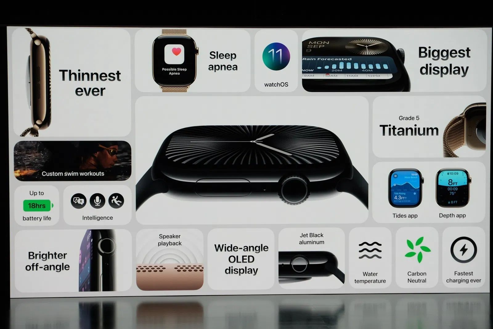 苹果 Jeff Williams 在台上表示,屏幕是 Apple Watch 的核心,Apple Watch Series 10 配备了 Apple Watch 有史以来最大的屏幕,甚至略大于 Ultra。