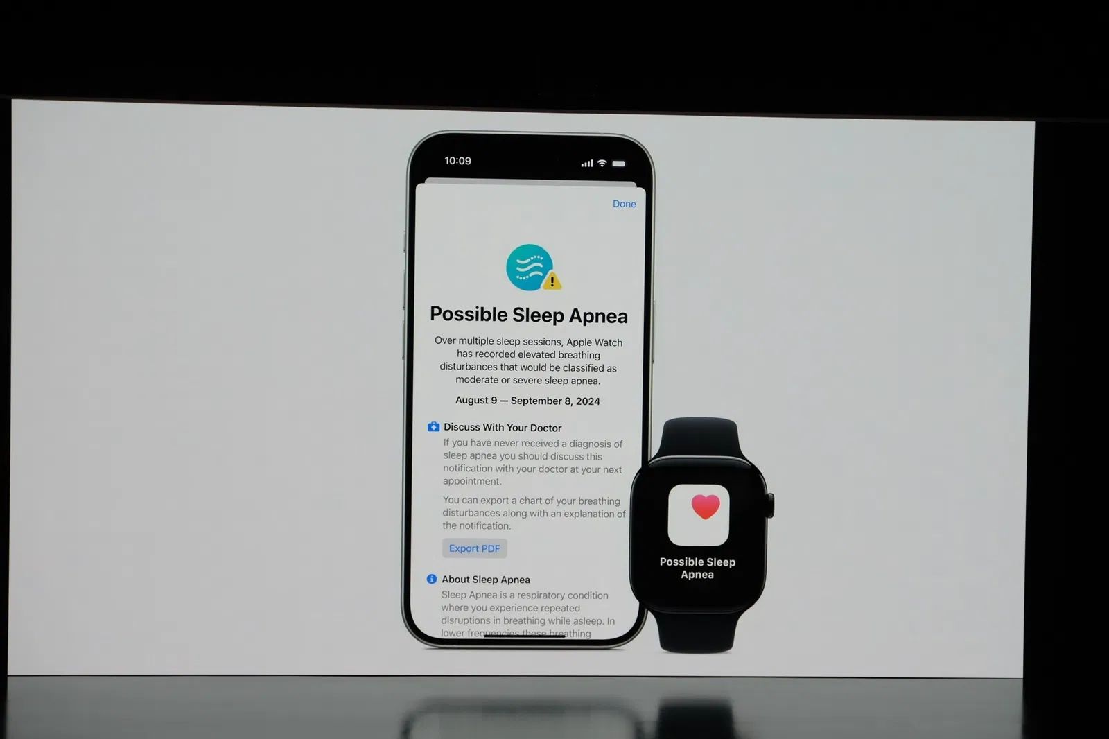 苹果表示据称,80% 的睡眠呼吸暂停患者未被诊断(未提供来源),Series 10 能检测睡眠呼吸暂停。