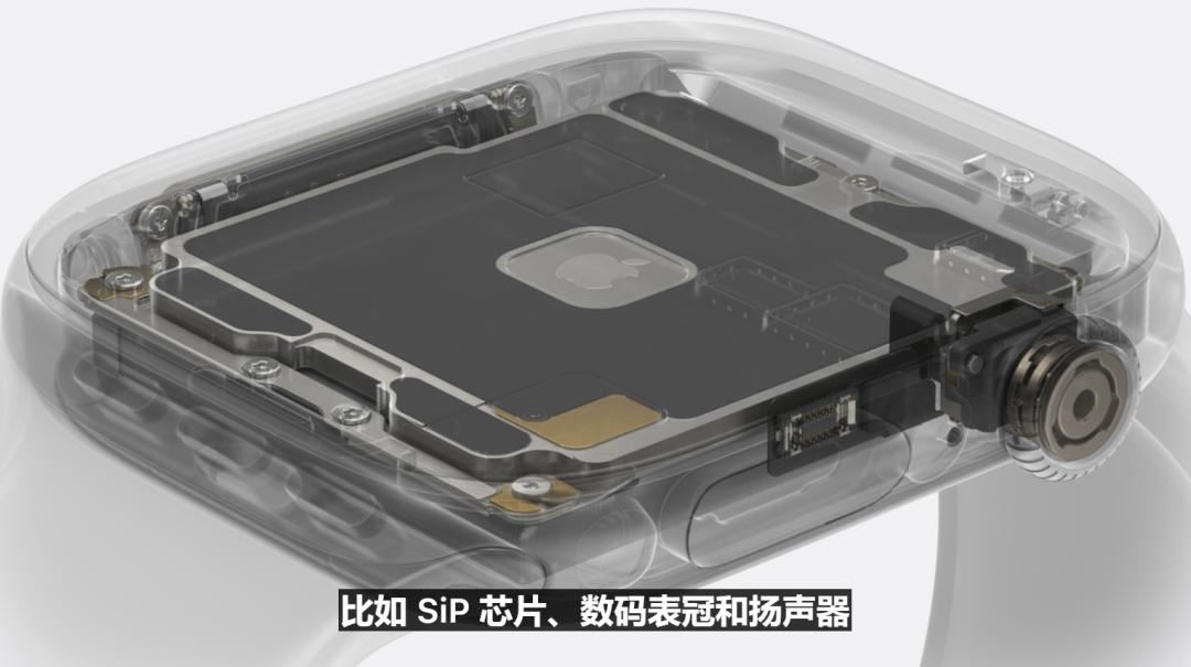 新的金属背面不仅集成了各种天线,包括蜂窝天线,保持 50m 防水性能,还容纳了更大的充电线圈,可以在短短 30 分钟内获得 80% 的电量,使其成为充电最快的 Apple Watch。