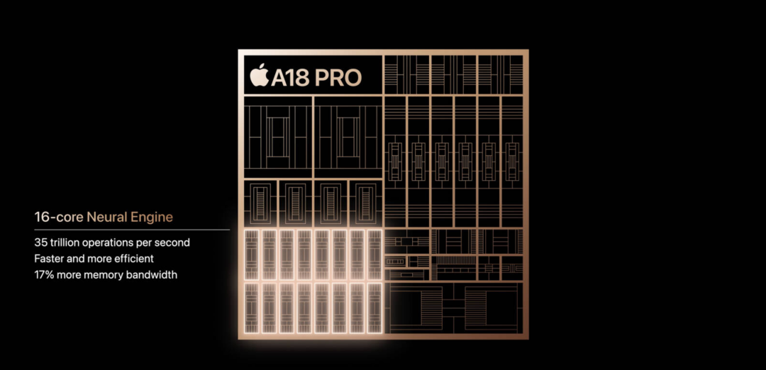 16 核神经引擎,每秒可执行 35 万亿次运算;系统内存带宽增加 17%,可以更高效地访问生成模型。