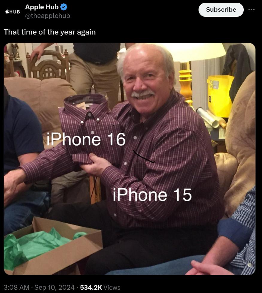 发布会后,不少网友调侃说新一代 iPhone 看起来和上一代差不多。