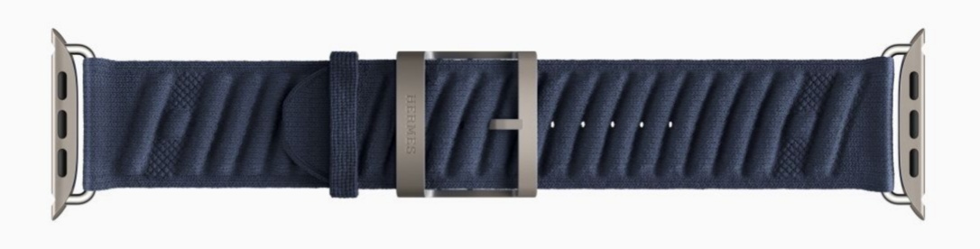 首款 Apple Watch Hermès Ultra 2 与动感十足的 En Mer 表带,当真是天生绝配。这款表带以防水材质编织而成,Bleu Nuit 午夜蓝的配色,呼应起伏的波纹,仿佛海浪连绵而成的“H”图案雅致非凡,还配有定制的钛金属针扣。
