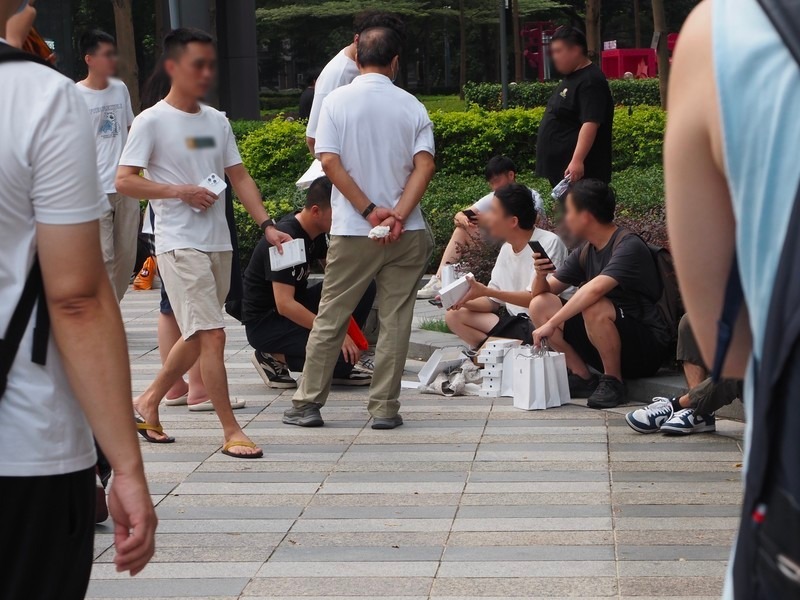 (iPhone15系列开售时,广州Apple Store店外「回收」手机的人)