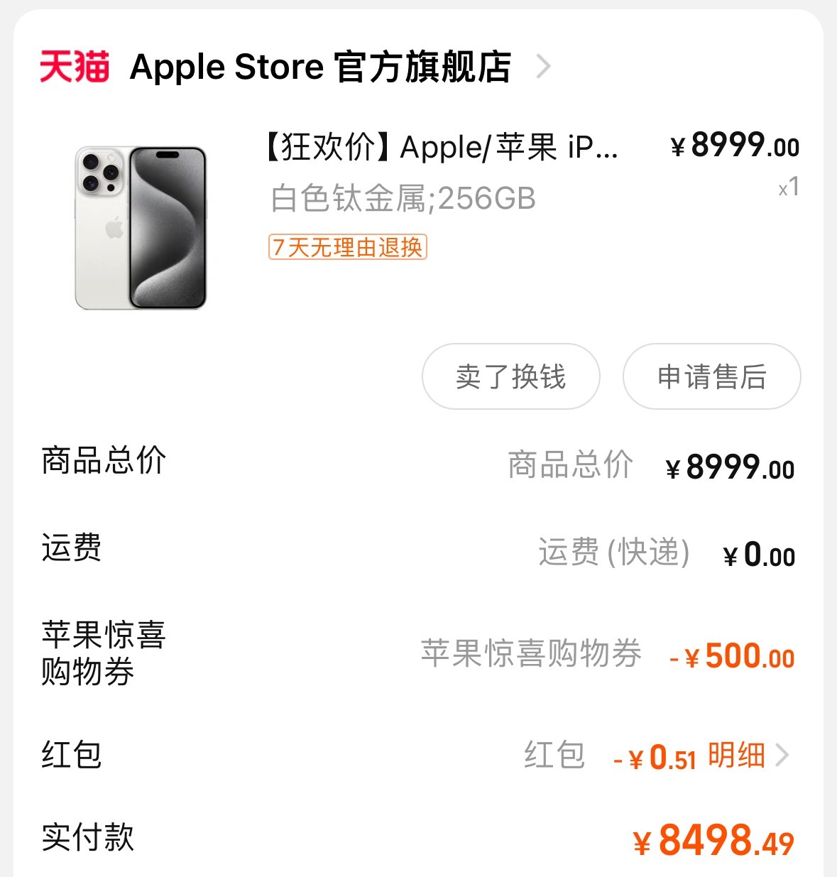 结合往年的经验,每年下半年购买新iPhone最好的时机一般会是双11期间,如去年双11就连苹果官方的天猫Apple Store官方旗舰店都推出了「惊喜购物券」,iPhone15 Pro能够直接优惠500元,如果选择第三方商家,还可能叠加平台补贴、优惠券或满减活动等形式,部分型号的优惠幅度可能超过1000元。