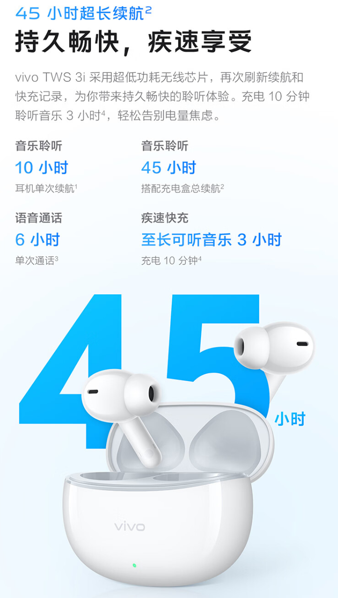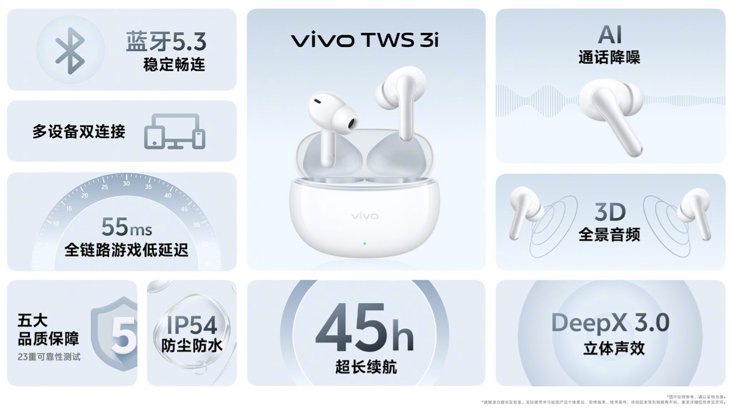 IT之家 9 月 10 日消息,vivo TWS 3i 无线耳机标准版今日正式开售,该耳机采用蓝牙 5.3 协议,综合续航 45 小时,售价 99 元。