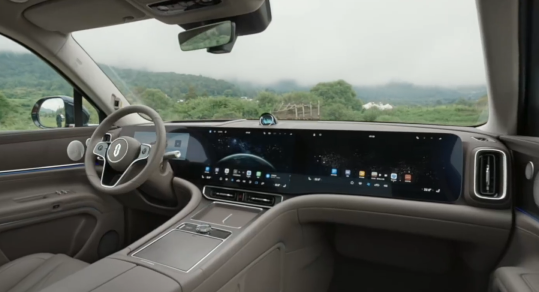 内饰方面,新车延续智界 S7 的设计风格,配备与前者同款的远端仪表盘、纯平仪表台和“橄榄形”方向盘。