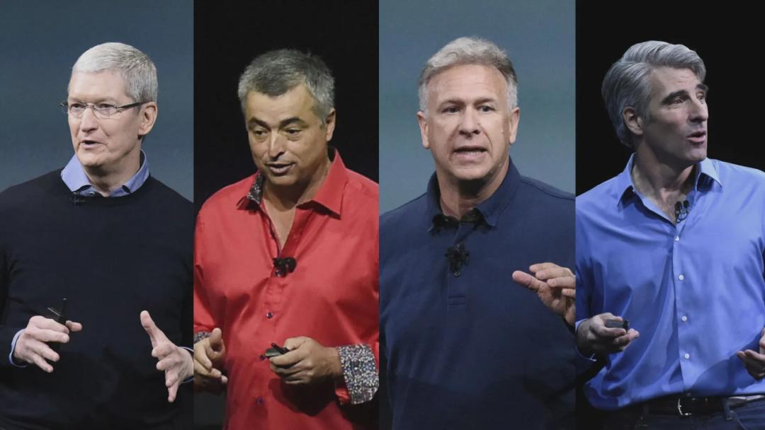 从左到右依次为:Tim Cook,Eddy Cue, Phil Schiller 和Craig Federighi 图源:彭博社