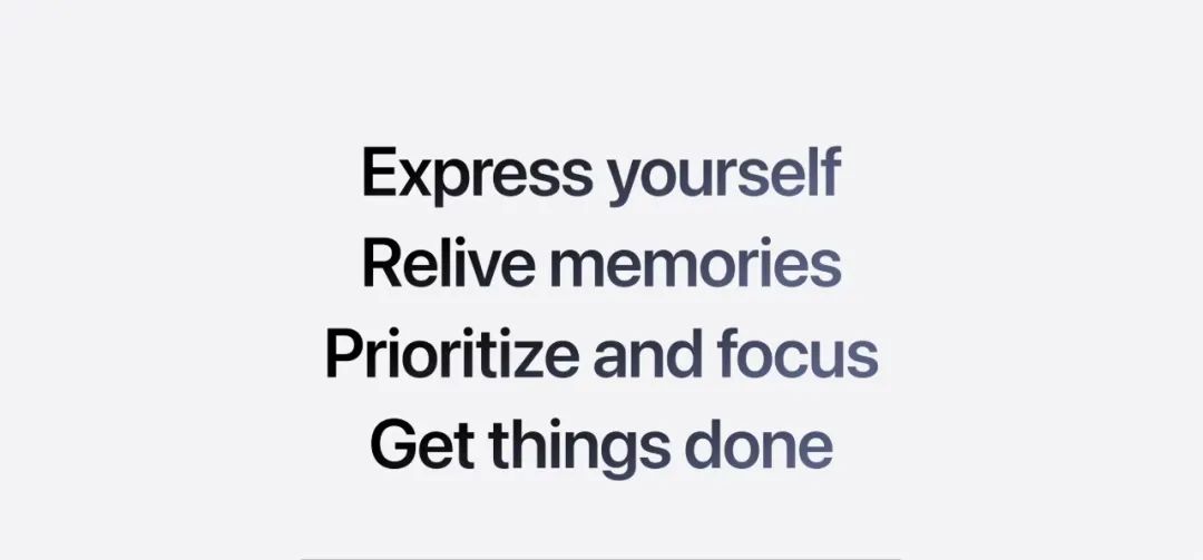 「苹果智能」的应用包括了表达自己、重温回忆、 确定优先级与把事情做好 图源:发布会截图