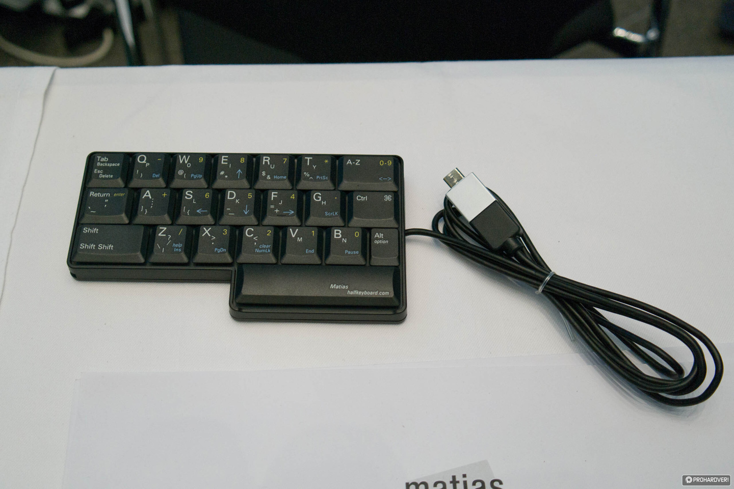 Matias 在本次展会上还带来了 Half Keyboard 单手 22 键键盘,该键盘适合仅使用左手进行打字的用户,通过空格键实现多种输入间的切换。