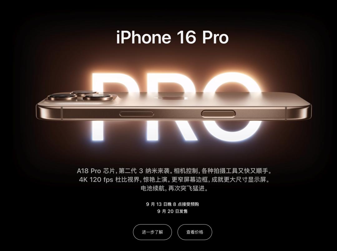 iPhone 16 Pro 新增加了金色配色,苹果称之为沙漠色
