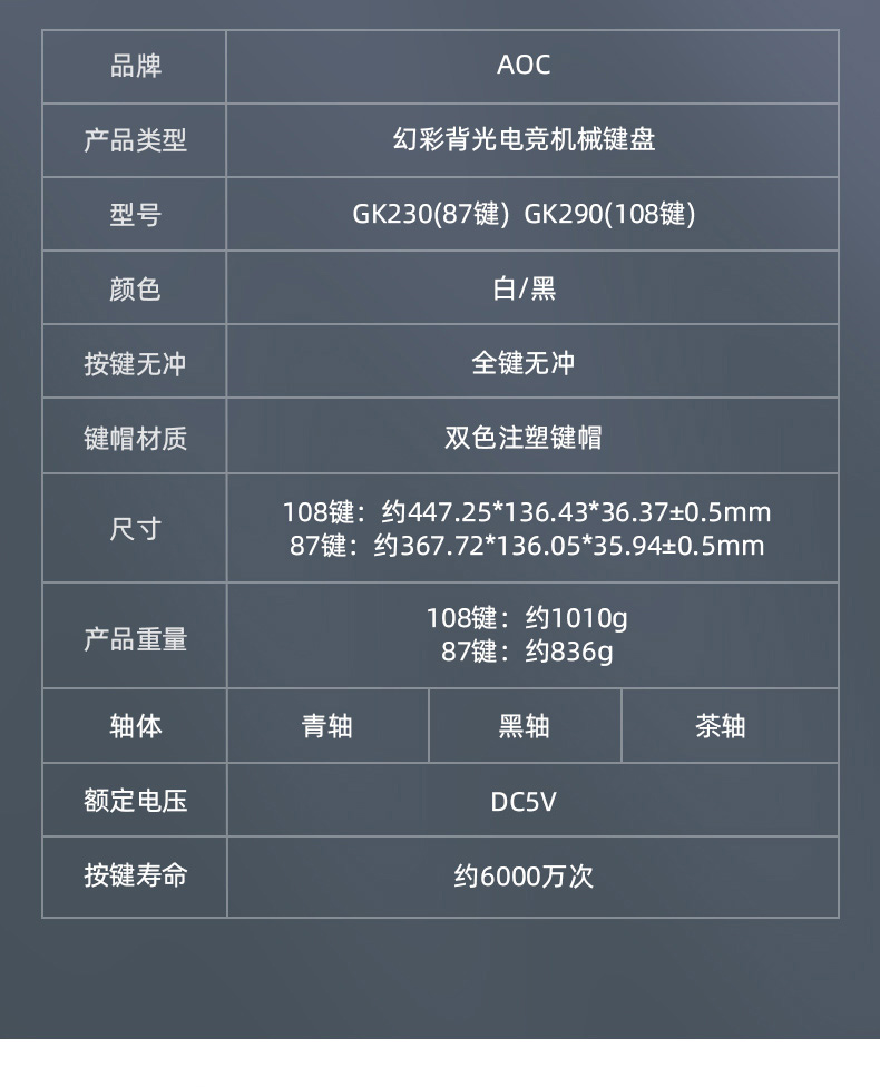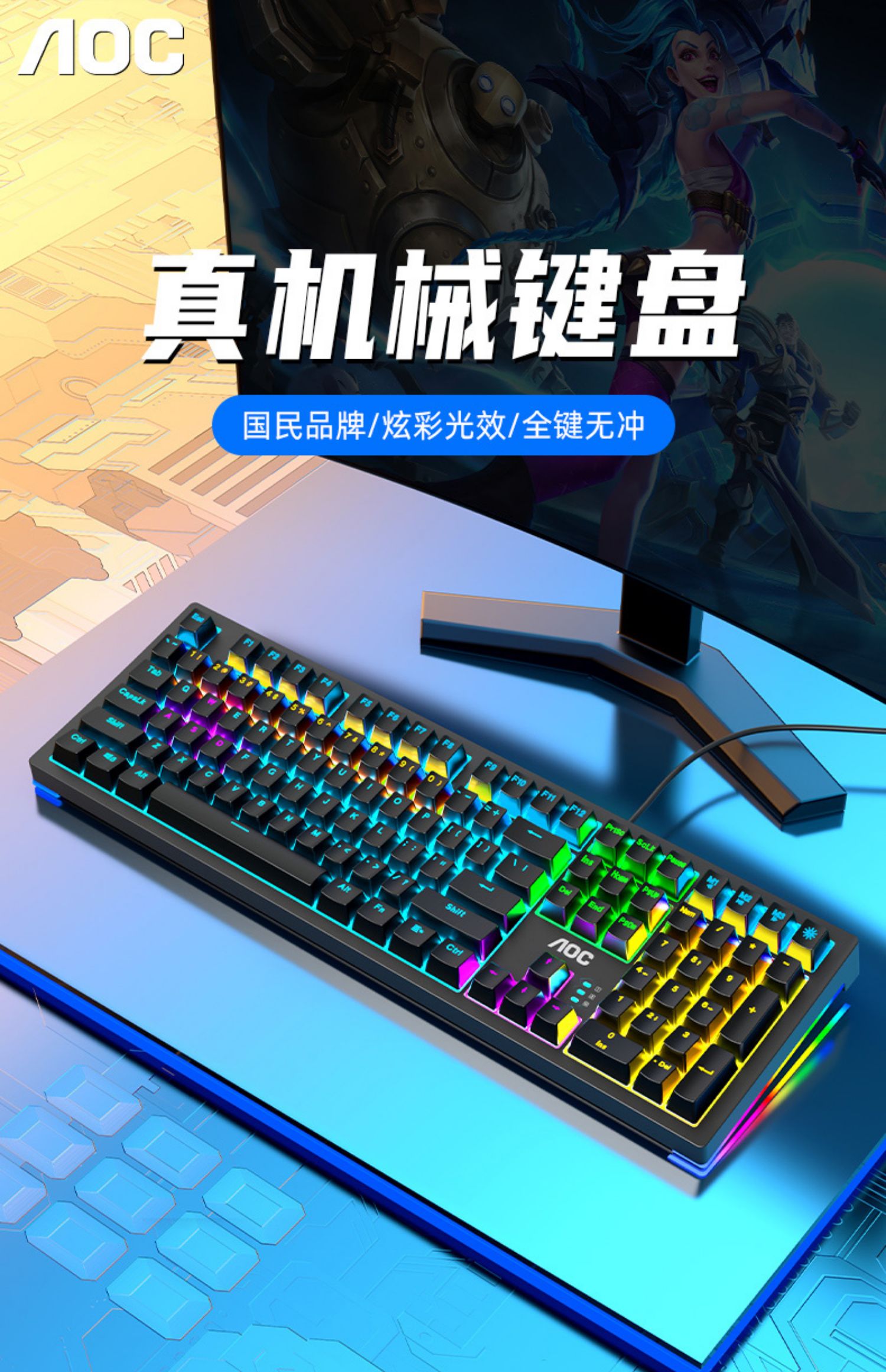 青轴 / 黑轴可选,AOC GK290 机械键盘报价 159 元,限时限量 90 元券,实付 69 元包邮。