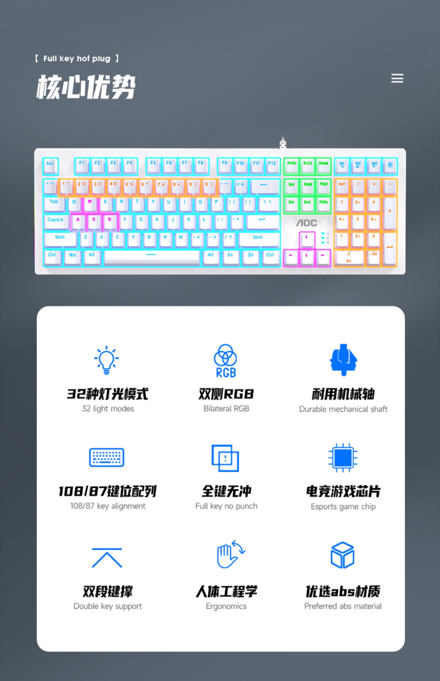 【免费试用,送运费险】32 种双侧 RGB 灯效,电竞游戏芯片,87 和 108 键可选,全键无冲,这个价格超值!