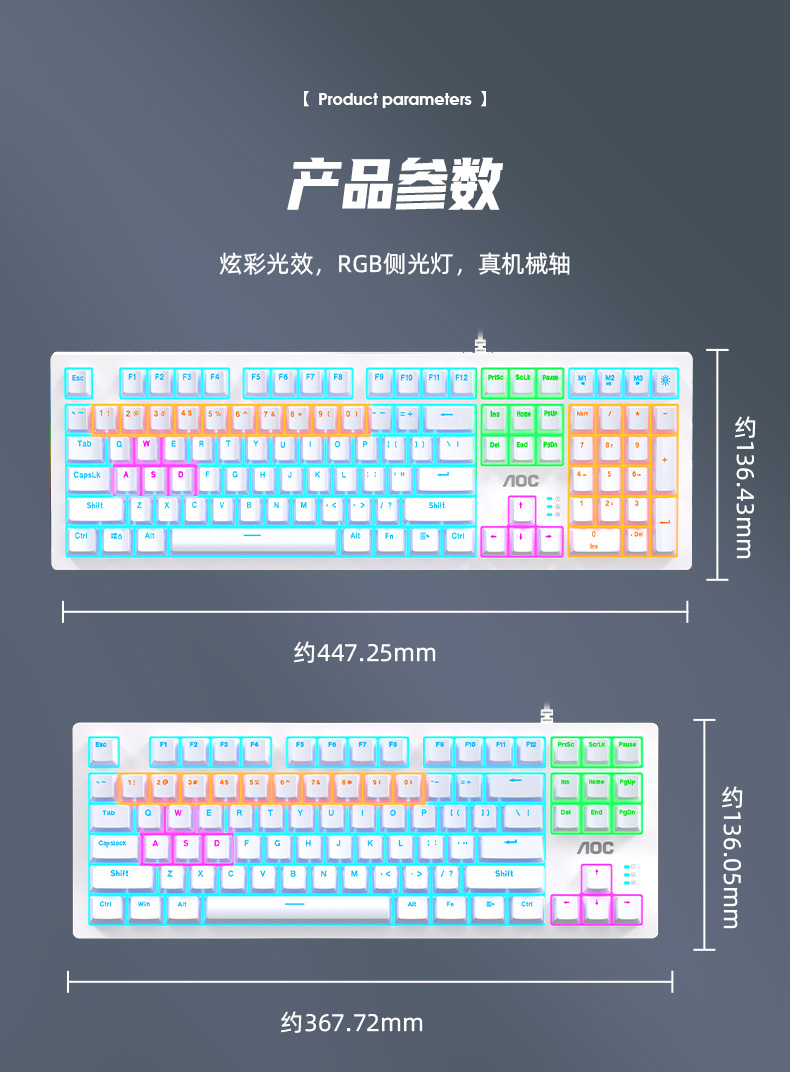 GK290(108 键)此价,GK230(87 键)便宜 10 元,混光版支 32 种 RGB 灯效,全键无冲。