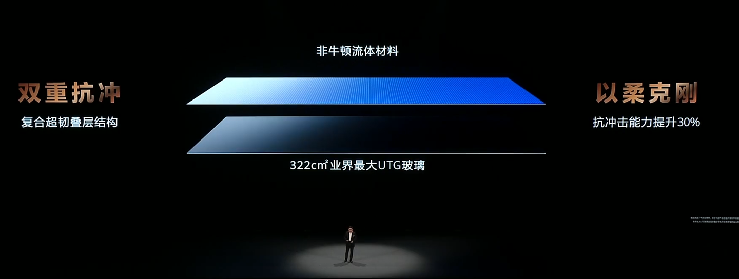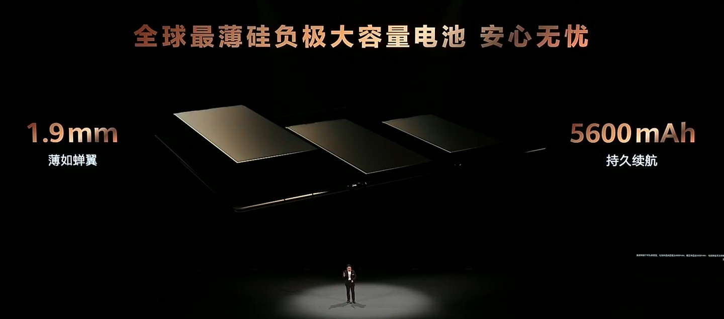 华为 Mate XT 非凡大师屏幕部分采用非牛顿流体材料;配有 5600mAh“全球最薄硅负极大容量电池”,电池厚度仅 1.9mm。