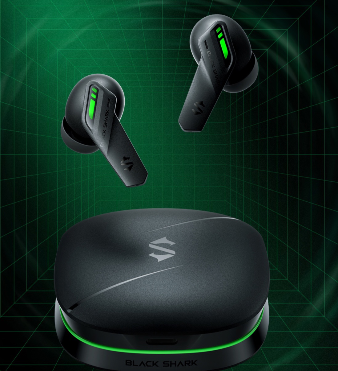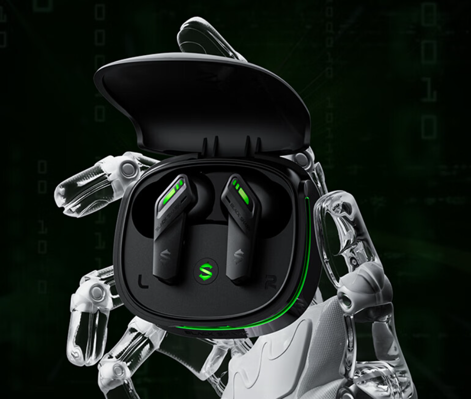 该耳机采用黑色入耳式设计,配有黑鲨标志性的绿色灯光点缀,采用 10mm 动圈单元,支持 40dB FF+FB 混合主动降噪,可选通透模式,最低延迟 60ms。使用蓝牙 5.3 技术,整体续航 24 小时,单耳续航 6 小时,支持“充电 15 分钟,使用 2 小时”。