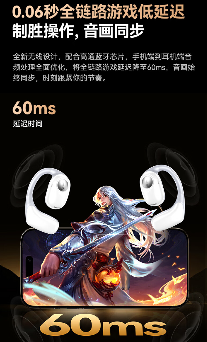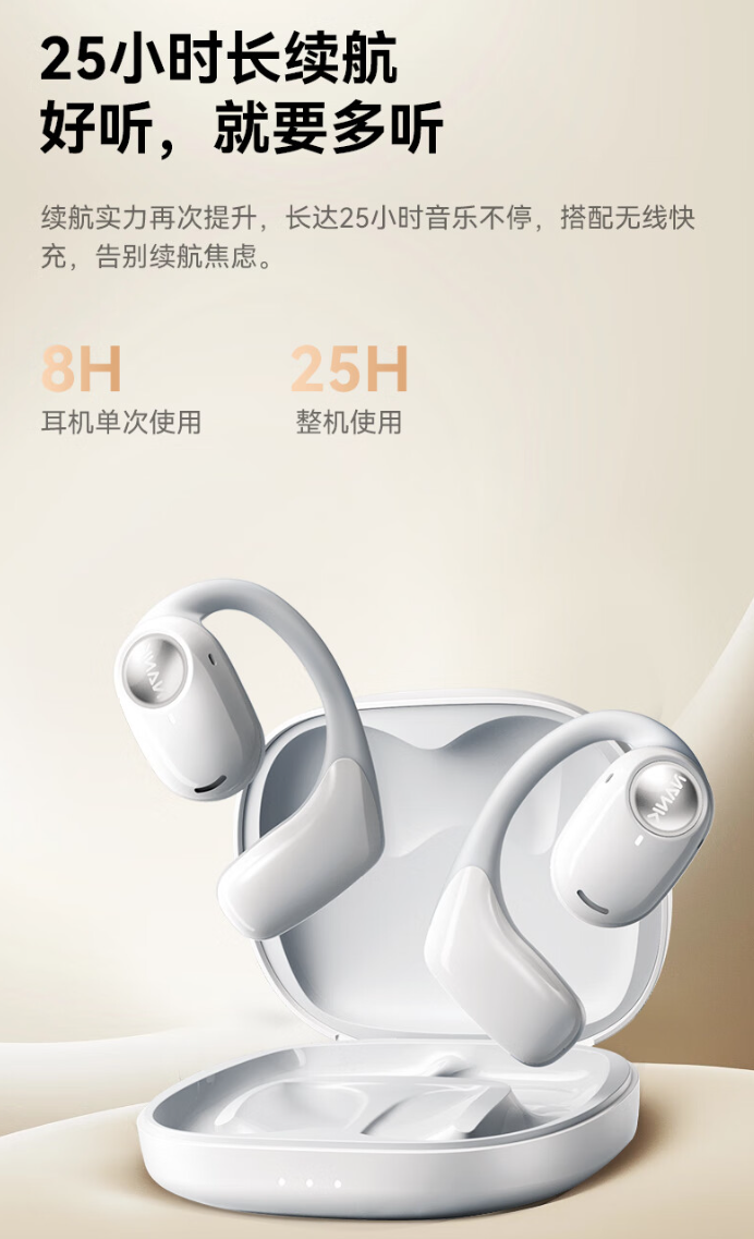 南卡 OE Pro 2 无线耳机拥有极地白和幻影灰两种配色,支持无线充电,单次 8 小时续航,整机续航 25 小时,支持 60ms 延迟。