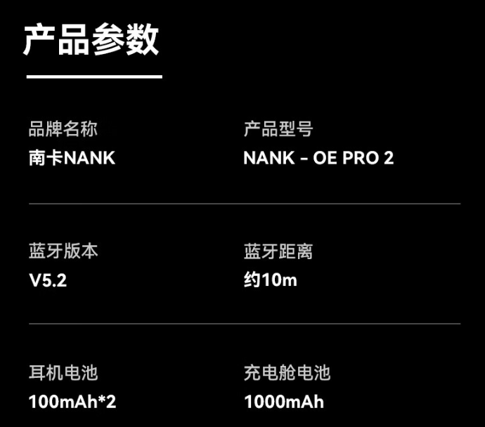 IT之家附南卡 OE Pro 2 开放式耳机产品参数如下: