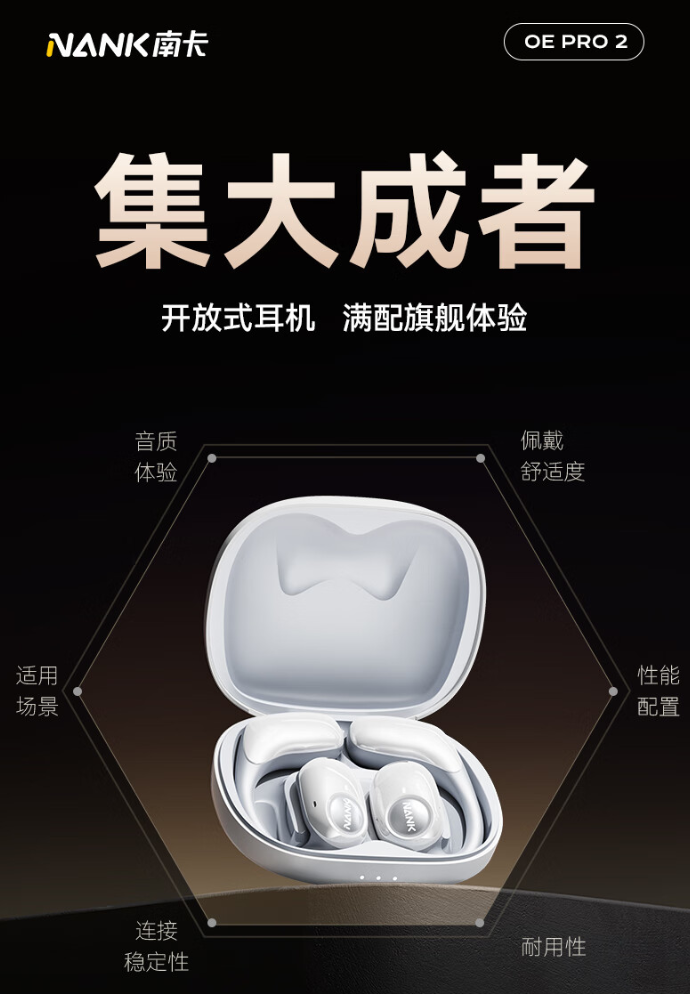 IT之家 9 月 10 日消息,南卡 OE Pro 2 开放式耳机现已在京东现货开售,该耳机支持无线充电、拥有约 60ms 延迟,首发 1399 元。
