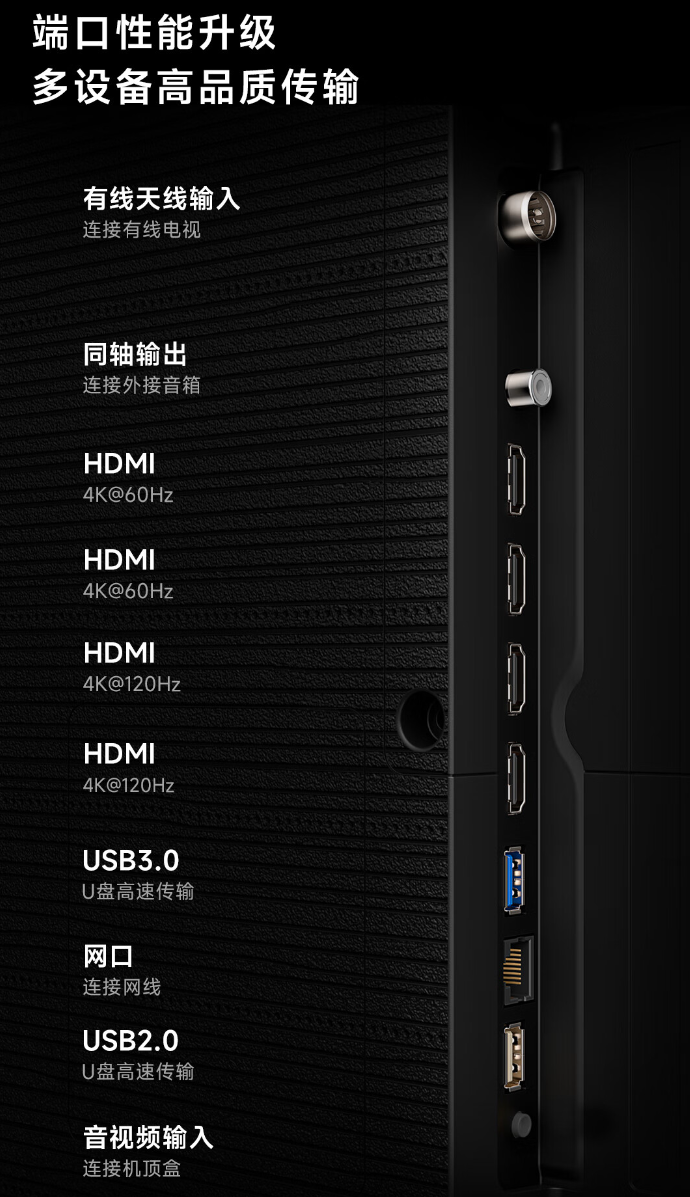 海信 Vidda AI 电视 X Mini 电视提供如下接口(55'' 缺少 1 个 HDMI 接口):
